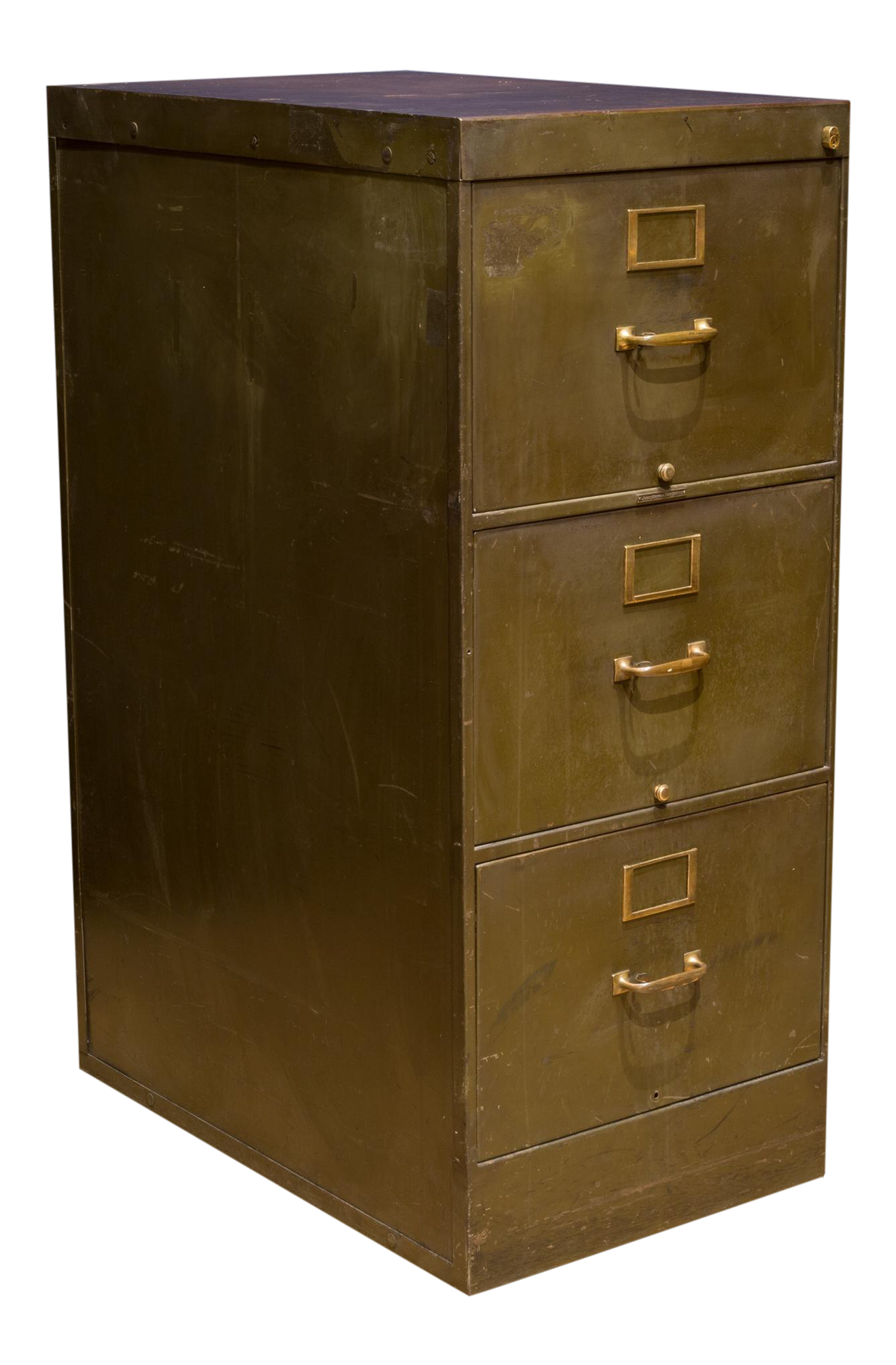 Library Bureau Sole Makers Army Green Steel And Brass File Cabinet C 1940 Chairish